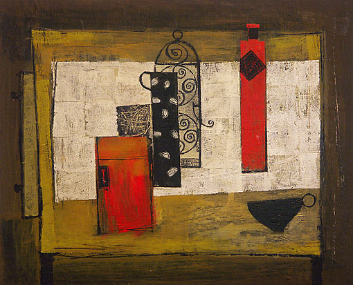 Scottish Art: Contemporary painting 'Skinny Vessels on an Ochre Table Top - Margaretann Bennett