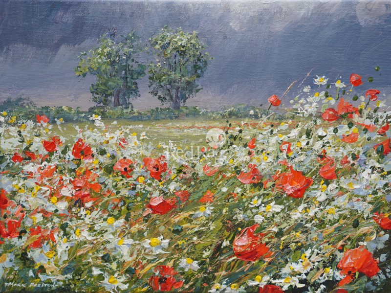 MARK PRESTON - sunlit popppies and mayweed, ednaston