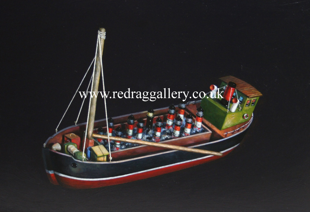 many of David Schofield's paintings, the boat appears to be floating in space and have no point of reference. In this way Schofield plays with our ideas of imagination and reality.