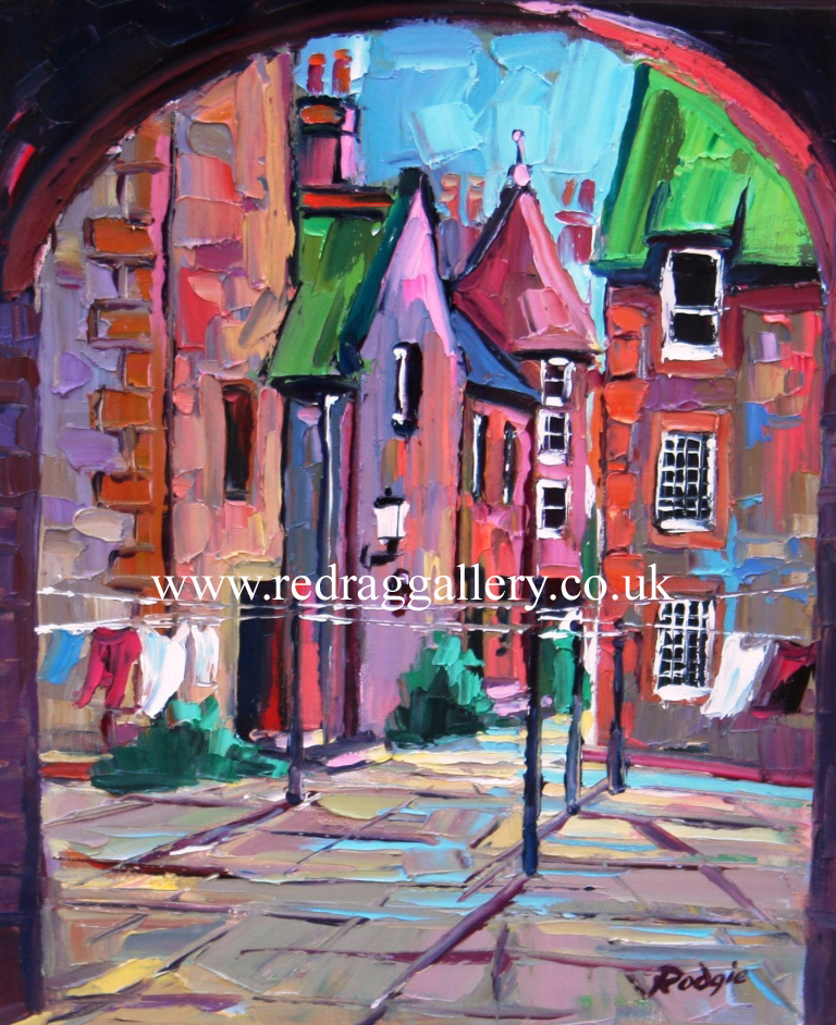 Scottish Contemporary Artist: Lynn Rodgie Painting: Wash Day, Edinburgh Close